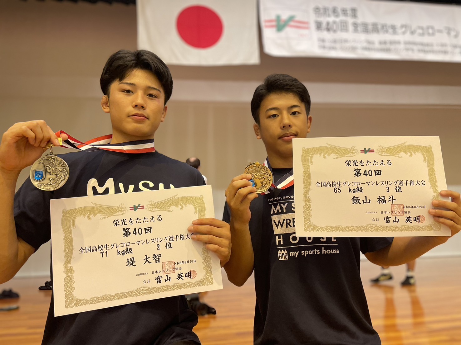 全国高校生グレコローマンレスリング選手権大会 71kg級 堤 大智 準優勝 65kg級 飯山 福斗 3位 92kg級 遠藤 慶伍 5位