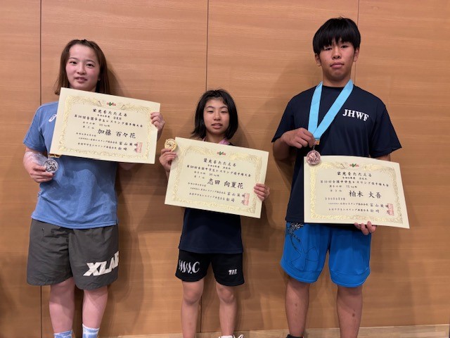 令和6年度沼尻杯 第50回全国中学生レスリング選手権大会 女子36kg級 志田 向夏花 優勝 58kg級 加藤 百々花 準優勝 男子75kg級 柏木 大吾 3位