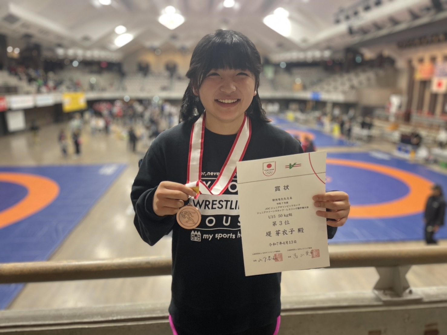 JOCジュニアオリンピックカップ ジュニアクイーンズカップ・レスリング選手権大会 U20の部 小川 凜佳 優勝 坂井 愛 優勝 ブルガリアで行われるU20世界選手権に出場 U17の部 小川 璃苑 準優勝 ベトナムで行われるU17アジア選手権に出場 坂井 椿 3位 石井 優奈 3位 U15の部 志田 向夏花 準優勝 堤 芽衣子 3位
