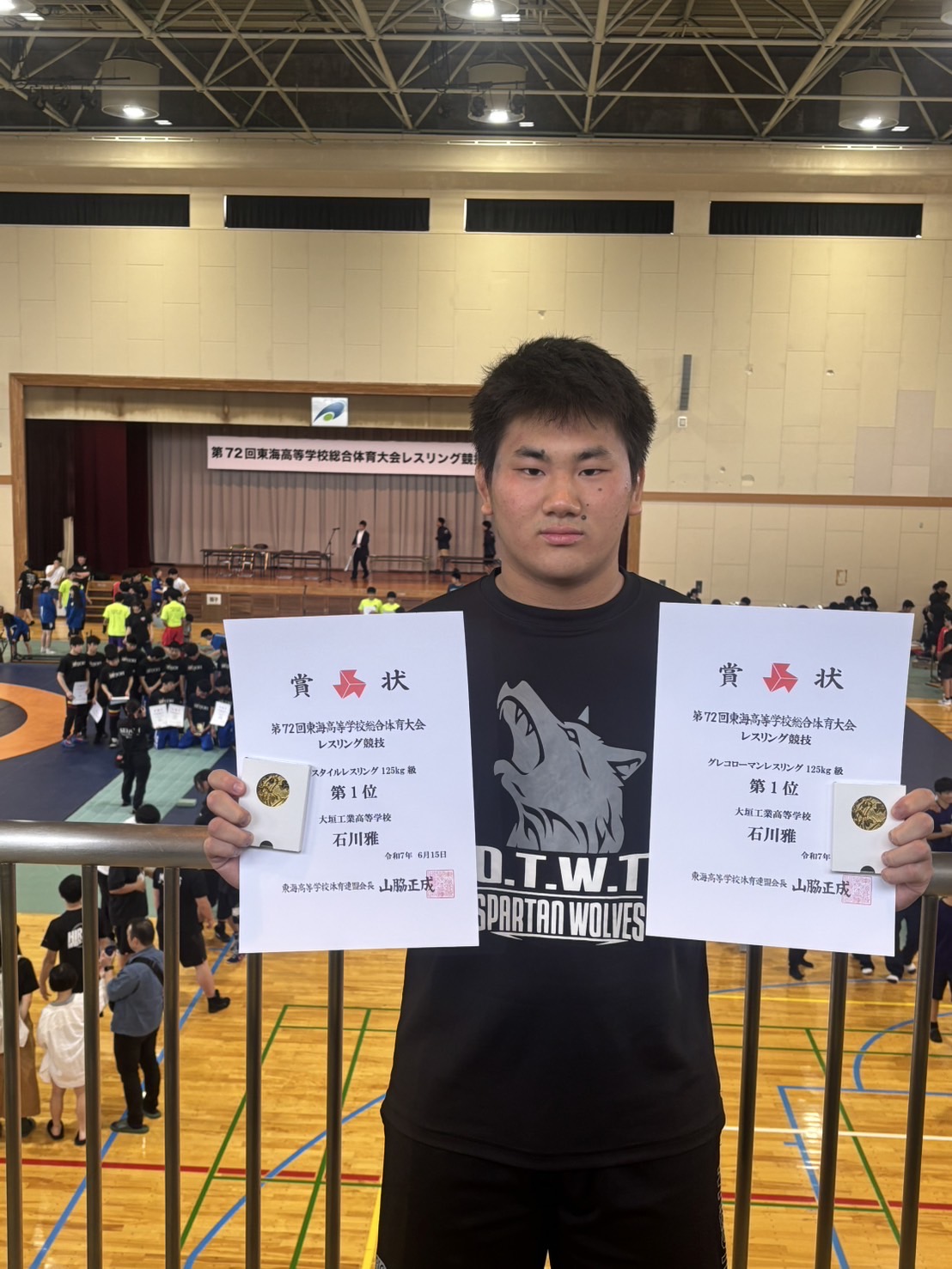 第72回東海高等学校総合体育大会レスリング競技 女子 50kg級 井田 彩夏(高山西) 準優勝 53kg級 小川 璃苑(中京) 準優勝 62kg級 坂井 椿(岐阜工業) 準優勝 直井 詩空(高山西) 3位 68kg級 石井 優奈(中京) 準優勝 インターハイ出場権獲得 男子フリースタイル 60kg級 松岡 大治(大垣日大) 3位 65kg級 岩井 煌弥(岐阜工業) 3位 71kg級 堤 大智(高山西) 優勝 80kg級 日比野 雄大(岐阜工業) 準優勝 92kg級 紀藤 紘哉(加茂農林) 3位 野口 圭冴(岐南工業) 3位 125kg級 石川 雅(大垣工業) 優勝 男子グレコローマンスタイル 51kg級 圓山 礼心(高山西) 3位 80kg級 堤 大智(高山西) 優勝 日比野 雄大(岐阜工業) 準優勝 92kg級 紀藤 紘哉(加茂農林) 3位 野口 圭冴(岐南工業) 3位 125kg級 石川 雅(大垣工業) 優勝