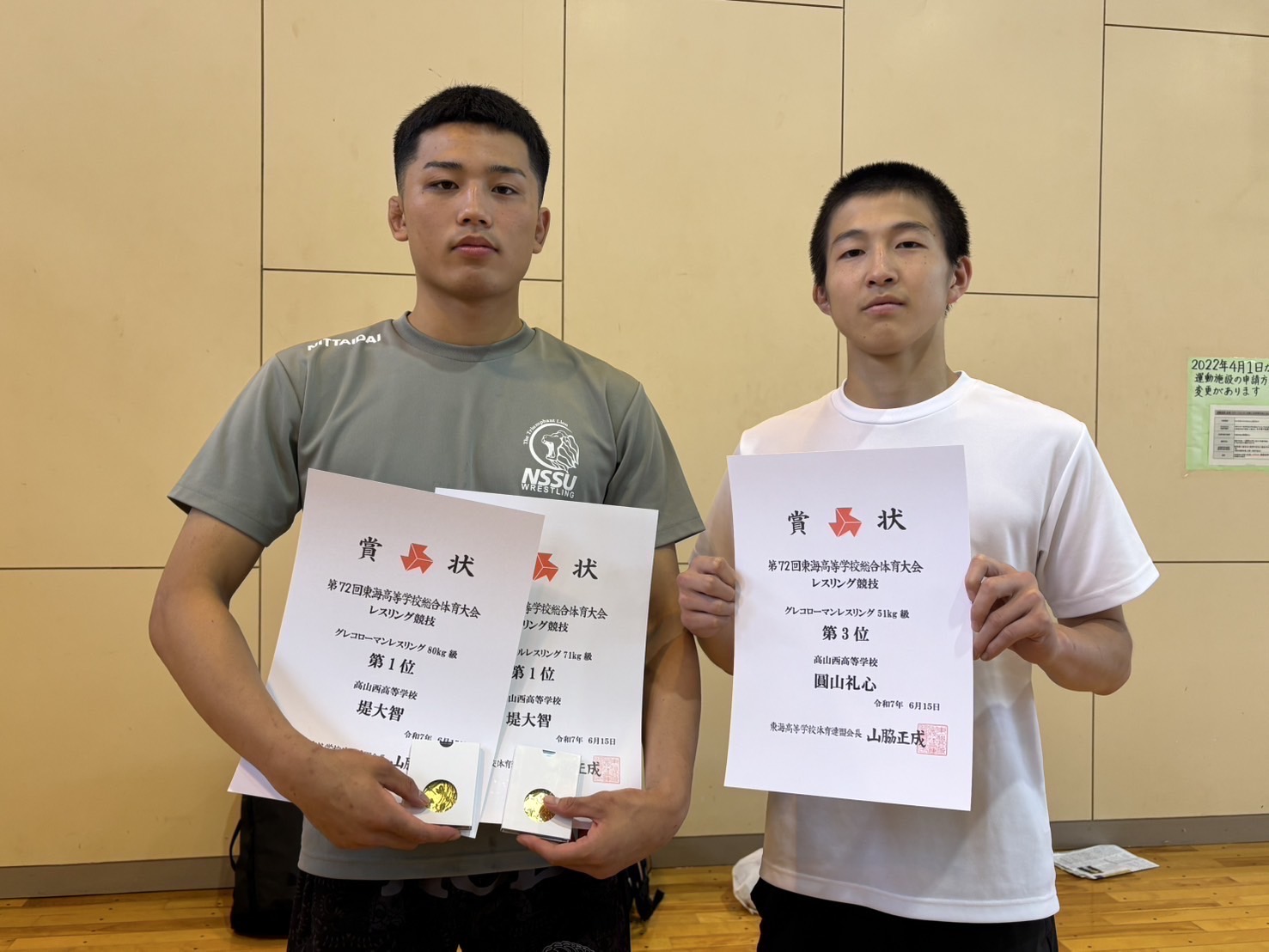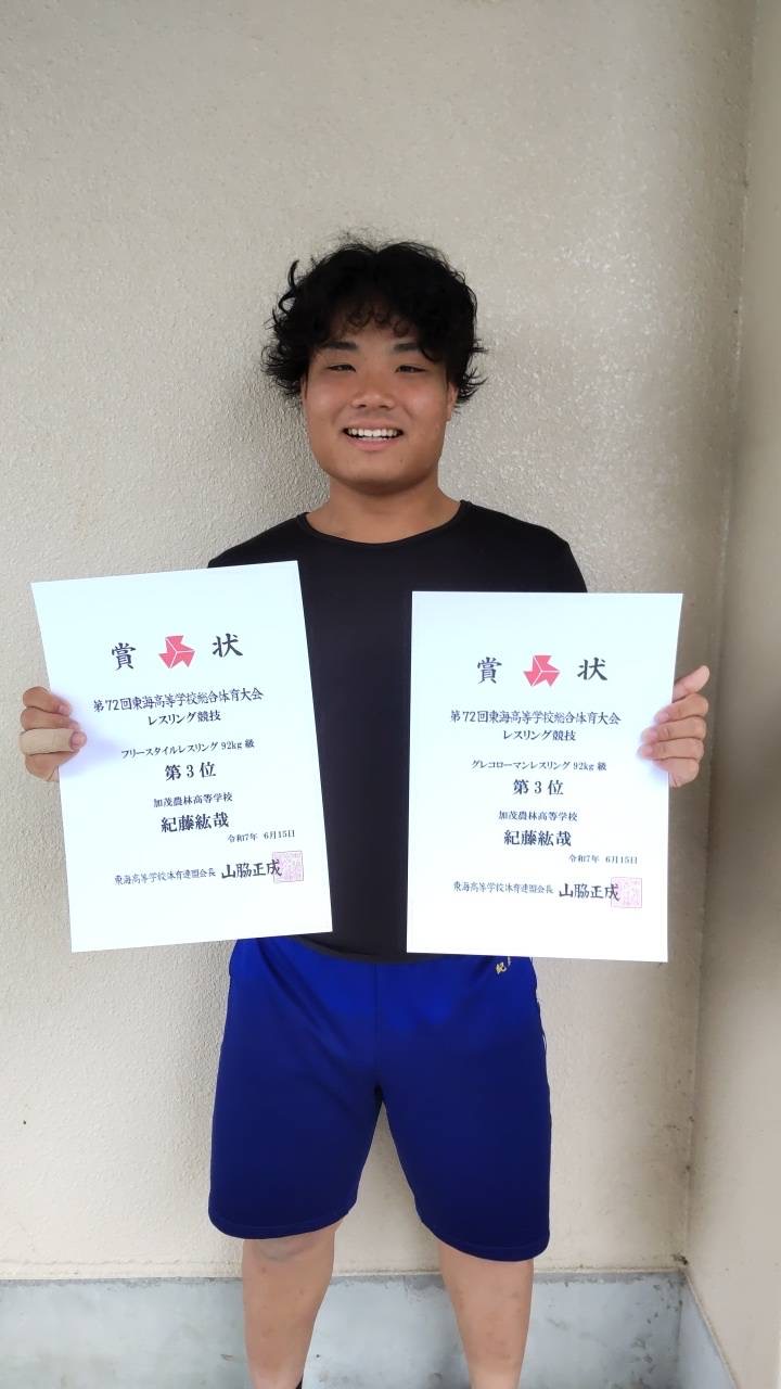 男子フリースタイル 60kg級 松岡 大治(大垣日大) 3位 65kg級 岩井 煌弥(岐阜工業) 3位 71kg級 堤 大智(高山西) 優勝 80kg級 日比野 雄大(岐阜工業) 準優勝 92kg級 紀藤 紘哉(加茂農林) 3位 野口 圭冴(岐南工業) 3位 125kg級 石川 雅(大垣工業) 優勝 男子グレコローマンスタイル 51kg級 圓山 礼心(高山西) 3位 80kg級 堤 大智(高山西) 優勝 日比野 雄大(岐阜工業) 準優勝 92kg級 紀藤 紘哉(加茂農林) 3位 野口 圭冴(岐南工業) 3位 125kg級 石川 雅(大垣工業) 優勝
