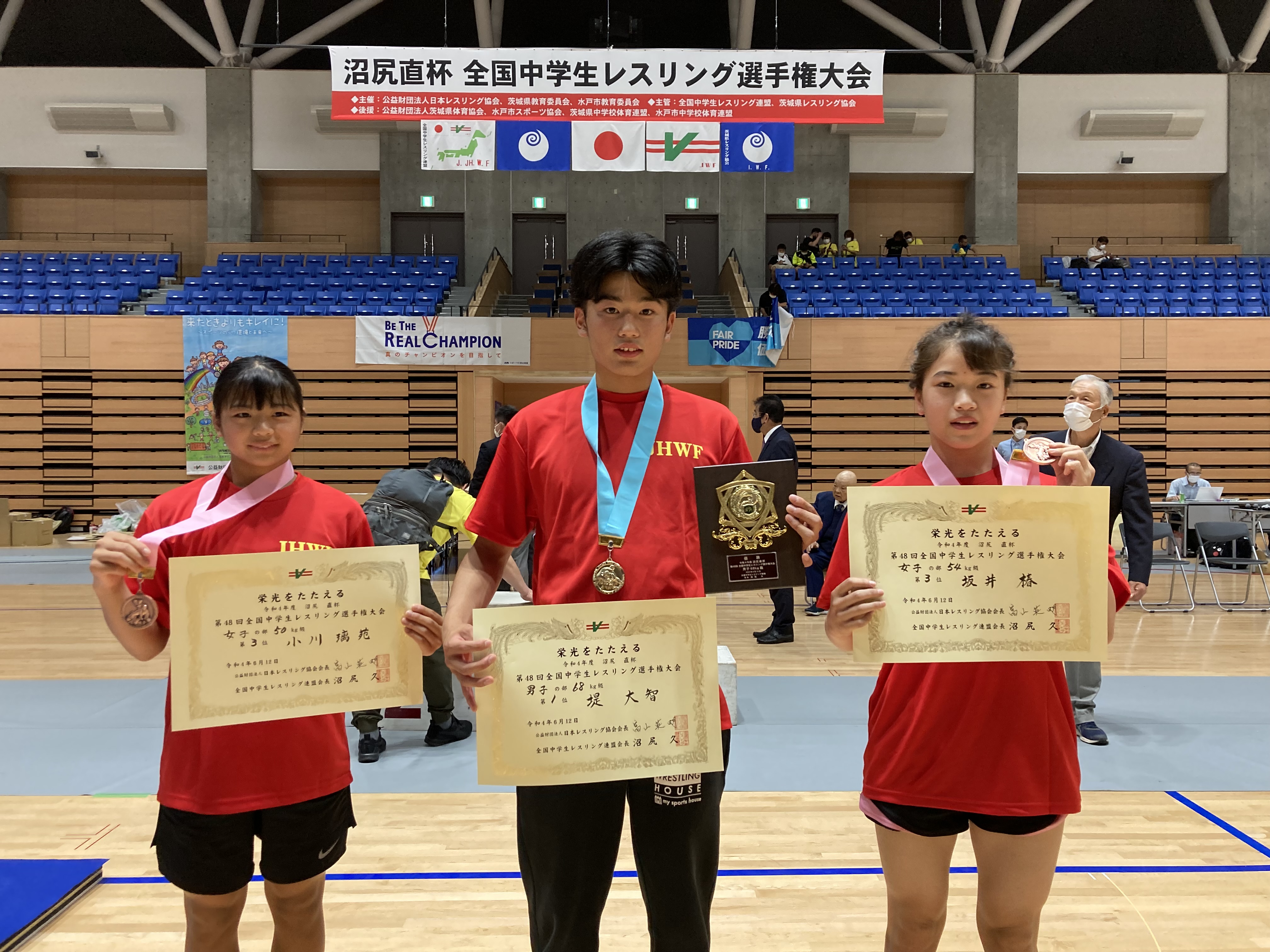 【男子68kg級】 堤 大智(マイスポーツハウス・久々野中学校3年) 優勝 【女子50kg級】 小川 璃苑(中津川ジュニア・中津川第二中学校2年) 3位 【女子54kg級】 坂井 椿(羽島市レスリング連盟・羽島中学校2年) 3位