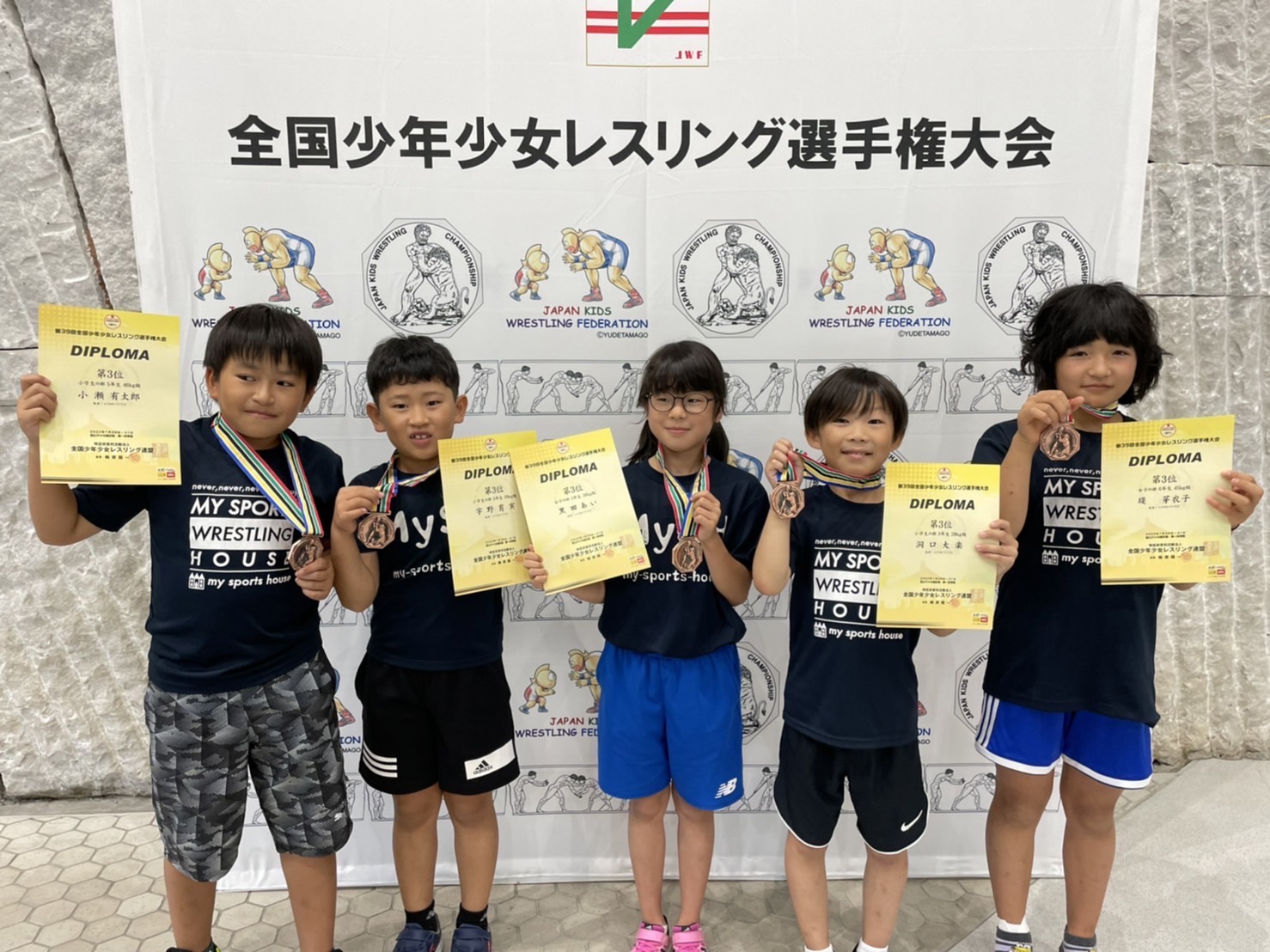 羽島市レスリング連盟 3年生 30kg級 志田 大耀 優勝 5年生 36kg級 加藤 丈誠 準優勝 5年生女子 28kg級 志田 向夏花 優勝 マイスポーツハウス 3年生 28kg級 洞口 大楽 3位 3年生 39kg級 宇野 育実 3位 3年生女子 30kg級 黒田 あい 3位 5年生 46kg級 小瀬 有太郎 3位 6年生女子 45kg級 堤 芽衣子 3位 中津川ジュニア 3年生 33kg級 辻村 亮輔 3位 5年生 42kg級 小川 璃久 準優勝 中津川ジュニア 6年生 55kg級 石原 羚亜 3位
