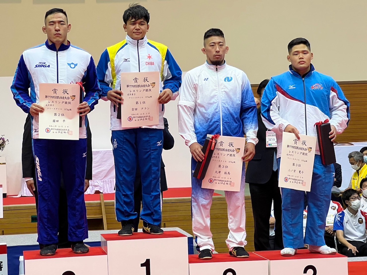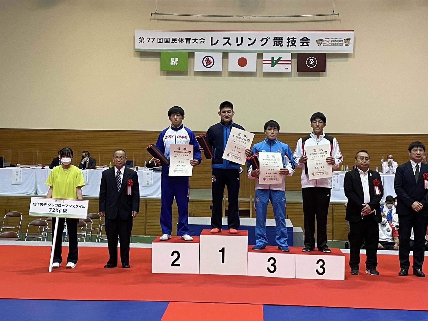 2022年いちご一会とちぎ国体 成年フリースタイル 65kg級 上野 裕次郎(岐南工業卒) 準優勝 97kg級 二ノ宮 寛斗(岐南工業卒) 3位 成年グレコローマンスタイル 72kg級 春日井 湧雅(中津商業卒) 3位 87kg級 谷崎 大造(岐南工業卒) 5位 130kg級 山田 康瑛(岐南工業卒) 5位