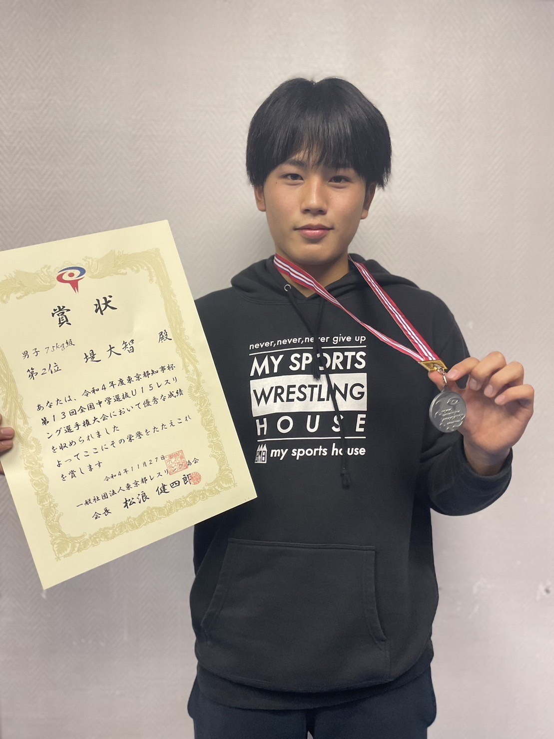 令和4年度東京都知事杯第13回全国中学選抜U15レスリング選手権大会 男子75kg級 堤 大智(マイスポーツハウス) 準優勝